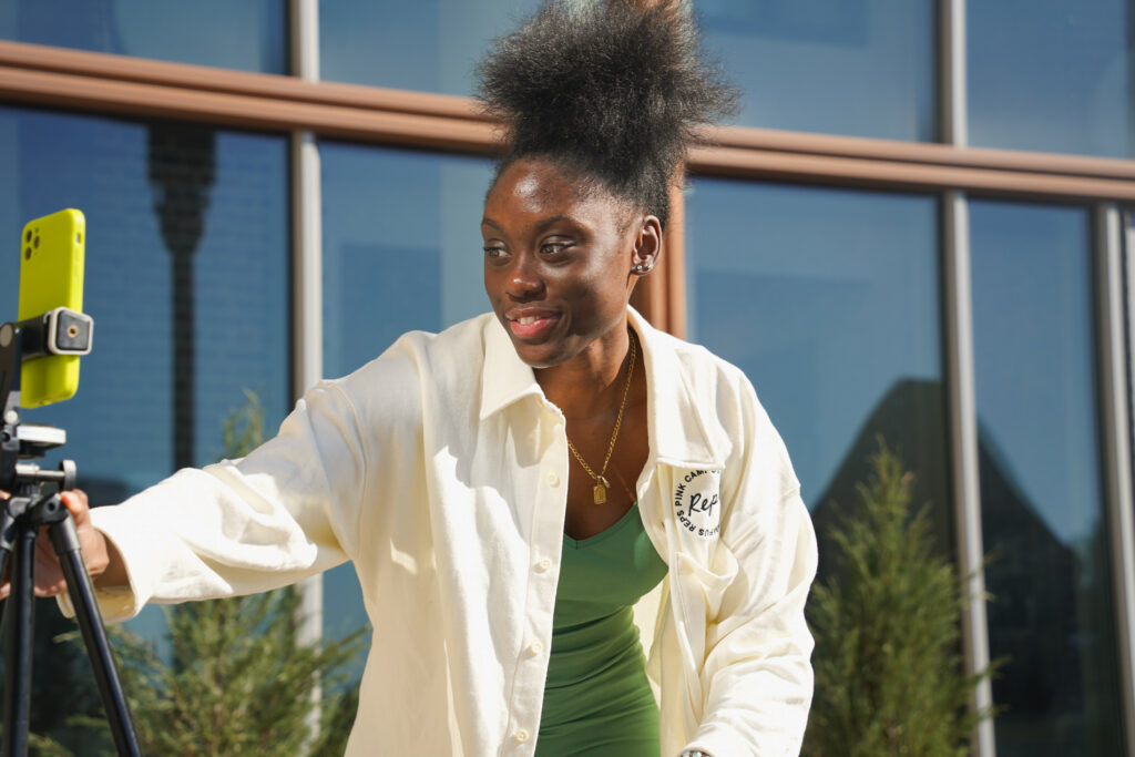Fametta Zubah films content for Victoria’s Secret Pink outside Coffman Memorial Union on April 14. (Antonette Kamara)